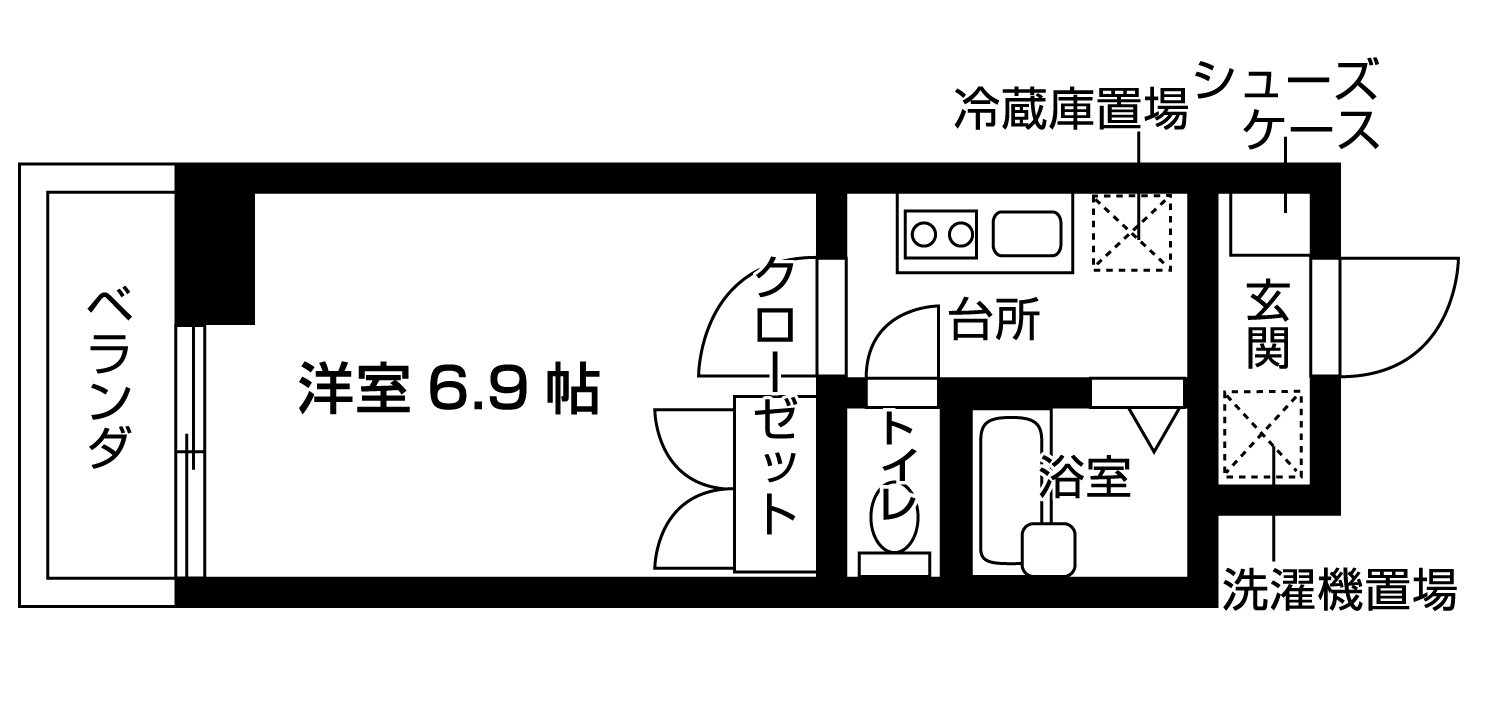 バルコニー、 フローリング、 エアコン、 駐輪場、 バストイレ別、 温水洗浄便座、 冷房、 シューズボックス、 オートロック、 カードキー、 防犯カメラ、 24時間緊急通報システム